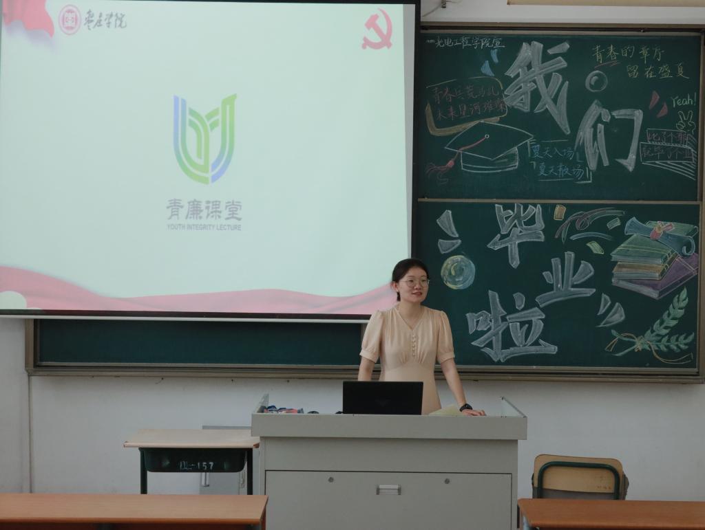 会上,辅导员以国家反腐的典型案例和廉洁干部的光辉事迹为主要切入点,强调廉洁的重要性与必要性,引导员工不断增强纪律意识和规矩意识,筑牢廉洁从业的思想道德防线,树立正确的世界观、人生观和价值观,走好迈向社会的第一步。随后,毕业生结合自身的学习和社会实践,对毕业后如何在工作中坚持客观公正、诚实守信和廉洁自律进行交流与分享。同学们纷纷表示,在今后的学习工作生活中,要树牢红线意识和底线思维,坚持以“廉”润心,以“洁”修身,让清风正气成为时代的主流。