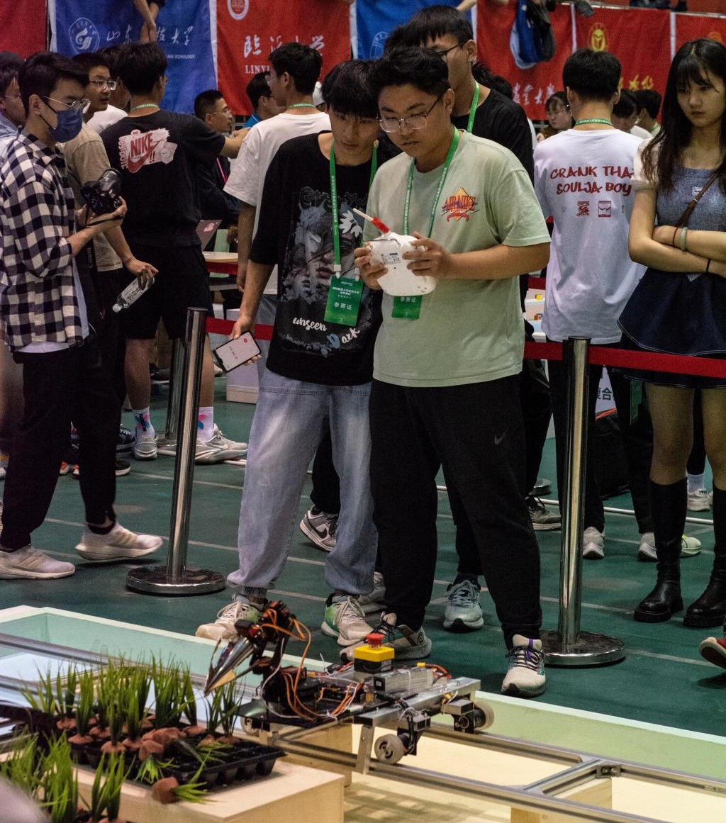 大赛围绕机器人实际开发过程,以“机器照护人”为主题,分数字创意赛道(CAIA)、编程设计赛道(CAIP)、工程竞技赛道(CAIR)、工程创客赛道(CAIM)等4个赛道,吸引了来自山东大学、中国海洋大学、齐鲁工业大学等36所高校的348支队伍、1247名师生共聚潍坊科技公司,参与了分“苗”必争、果实采摘、水下巡检、智能生活创意设计等11个项目的现场竞技。本次比赛由王加迎、奚宽浩等老师担任指导老师,共组织张乔、张希官、赵鑫龙、张思壹、刘博、赵子涵等30余名参赛队员,组成8支代表队,分别参与分“苗”必争、智能生活创意设计等项目,筹备赛事中参赛队员克服困难、反复练习,经过近三个月的集中训练,最终获得优异成绩。