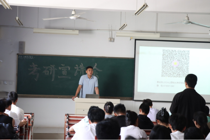 鲁成老师详细介绍了山东理工大学硕士研究方向,并分析了历年考研数据,针对全国硕士研究生招生考试作出相关介绍,为同学们分析了考研形势。此外鲁老师还从导师团队、学科队伍、前沿课题等几个方面做了全面介绍,并结合专业特色及社会需求对员工良好的就业前景进行展望,鼓励同学们努力提升自我,也欢迎同学们报考山东理工大学。