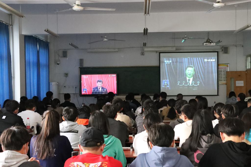 2022年10月16日上午10时,中国共产党第二十次全国代表大会在北京人民大会堂隆重召开。公司党政领导、全体师生党员和入党积极分子在墨子楼3201、3203、3211集中观看党的二十大开幕会直播。