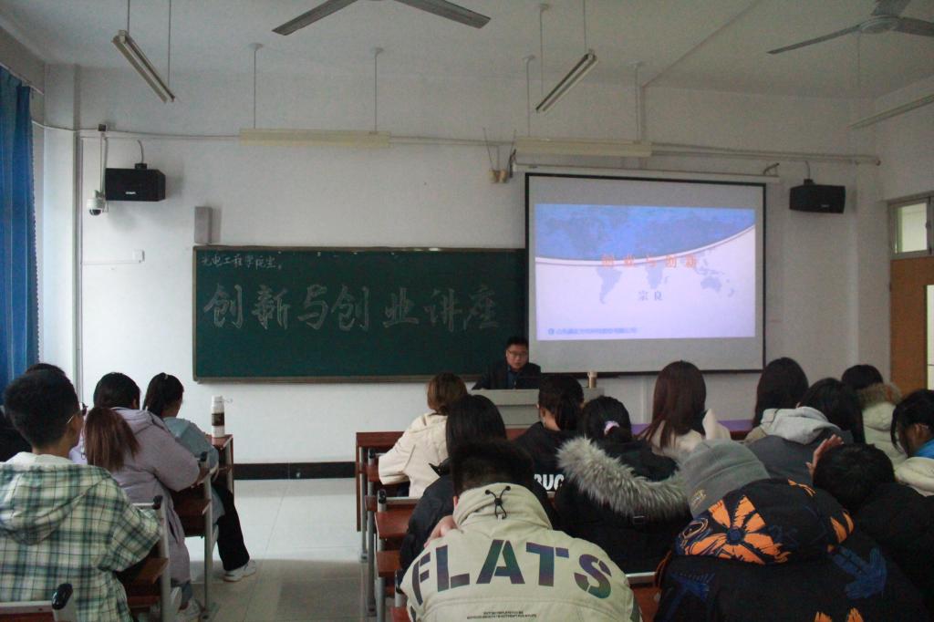 12月9日下午,公海gh555000aa线路检测邀请公司产业教授、山东鑫宏光电科技有限公司总经理宗良做了题为“创业与创新”主题报告。报告会在墨子楼S3301会议室举行,经理助理王猛主持会议,公海gh555000aa线路检测部分教职工及电子信息工程专业150余名师生聆听了报告。