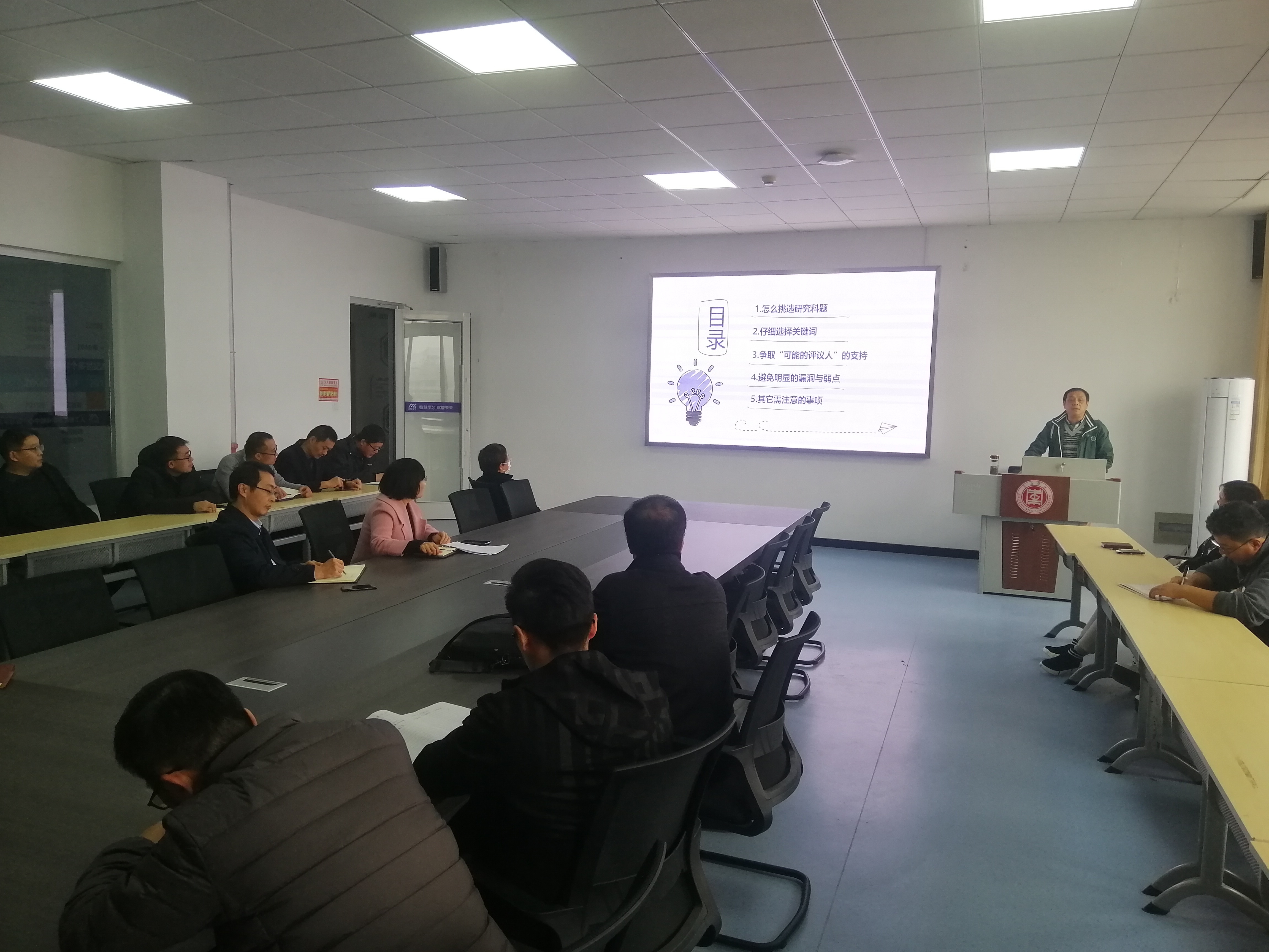 会上,高炬教授作了怎样申请自然科学基金的报告,从怎么挑选研究课题、仔细选择关键词、争取评议人支持、避免明显的漏洞与弱点等入手,重点阐述了从创新思维角度凝练科学问题,提出科学假设,明确研究思路,兼顾需要性与目的性原则、创新性与先进性原则以及科学性原则编制基金申请书的过程。以基金项目的申请者和评审者的两个维度总结撰写要点建议,深入浅出地介绍了选题思路等在撰写基金申报书中的重要性。部分教师围绕基金申报与专家进行了探讨与交流,取得了良好的效果。