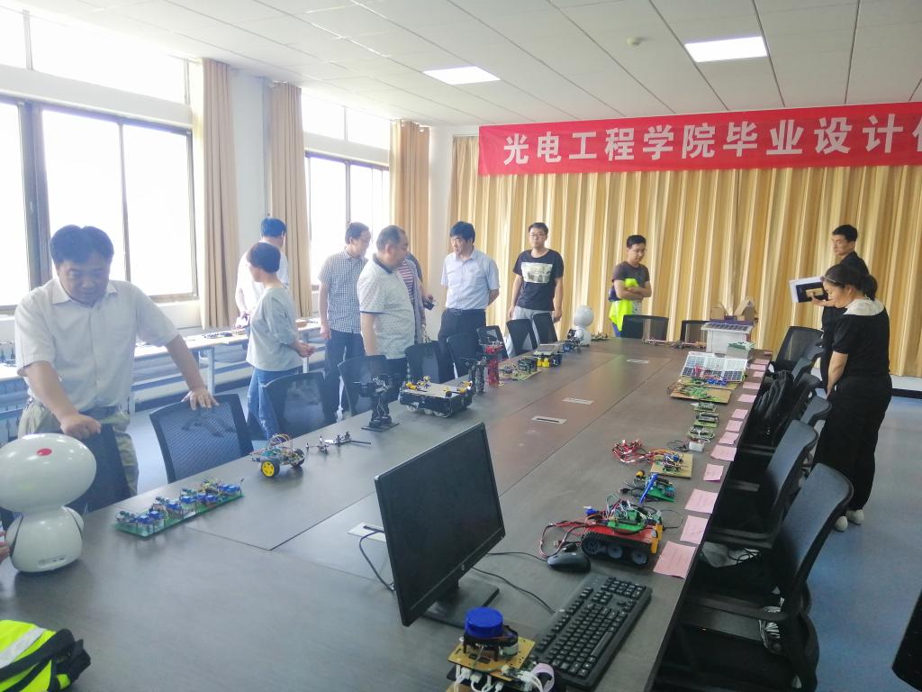 公司负责人及全体教师逐一观看了电子信息工程、光电信息科学工程等三个本科专业170余位本科毕业班同学的毕业作品,听取了现场作品介绍,并就设计思路、创作过程以及毕业生就业问题等与现场毕业设计指导教师进行了交流互动。