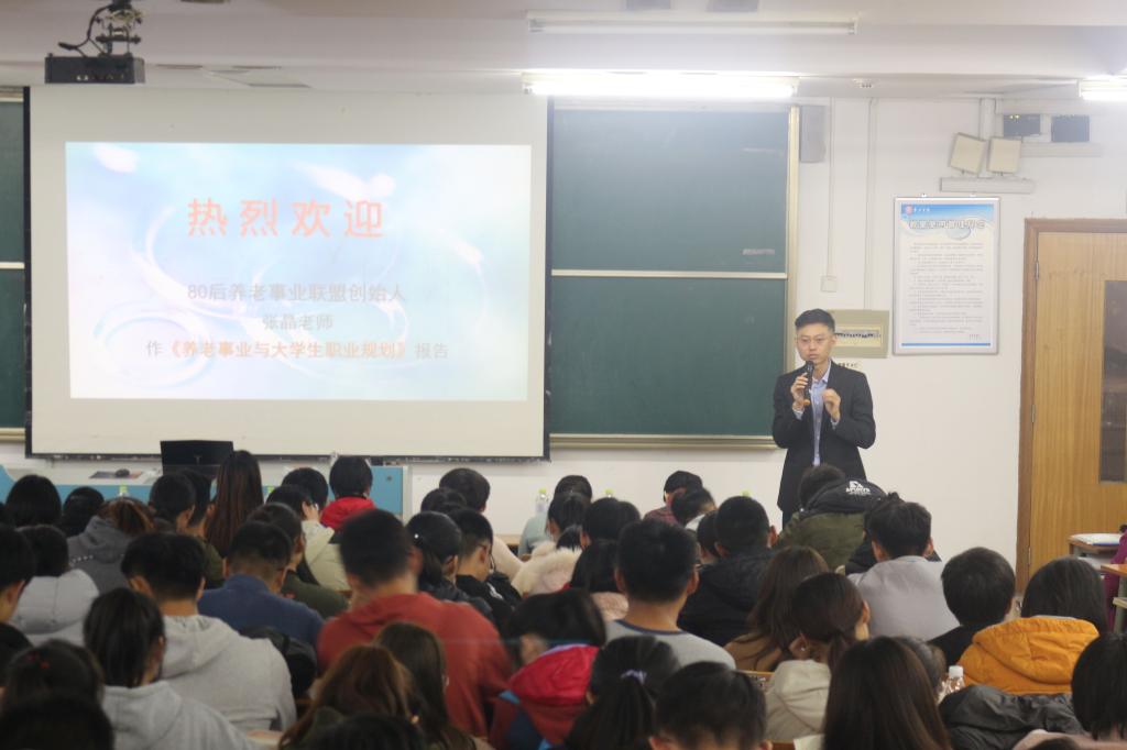 11月7日,应公海gh555000aa线路检测的邀请,80后养老产业联盟创始人、八零养老产业发展(北京)有限公司CEO张晶先生莅临公司,在综合楼1214室为公司教师和老年服务与管理、电子信息等专业的员工做报告,报告主题为《养老事业与职业规划》。