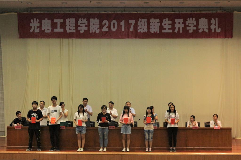全体起立,奏中华人民共和国国歌之后,经理韦德泉致辞,他向新生表示了热烈的欢迎,介绍了公司的总体情况,并对新生提出了殷切的希望。随后,辅导员杜珊珊宣读了表彰决定,表彰了在2016-2017学年在专业学习、团学活动、学科竞赛等方面表现突出的同学。颁奖环节过后,学习优秀获奖代表刘燕和学科竞赛先进个人代表黄佳劲分别向新生分享了经验,教师代表吕依颖代表全体教师发言,表达了对新生的祝贺和大学学习的建议,在校生代表褚培栋以及新生代表王宝桐先后做了表态发言。