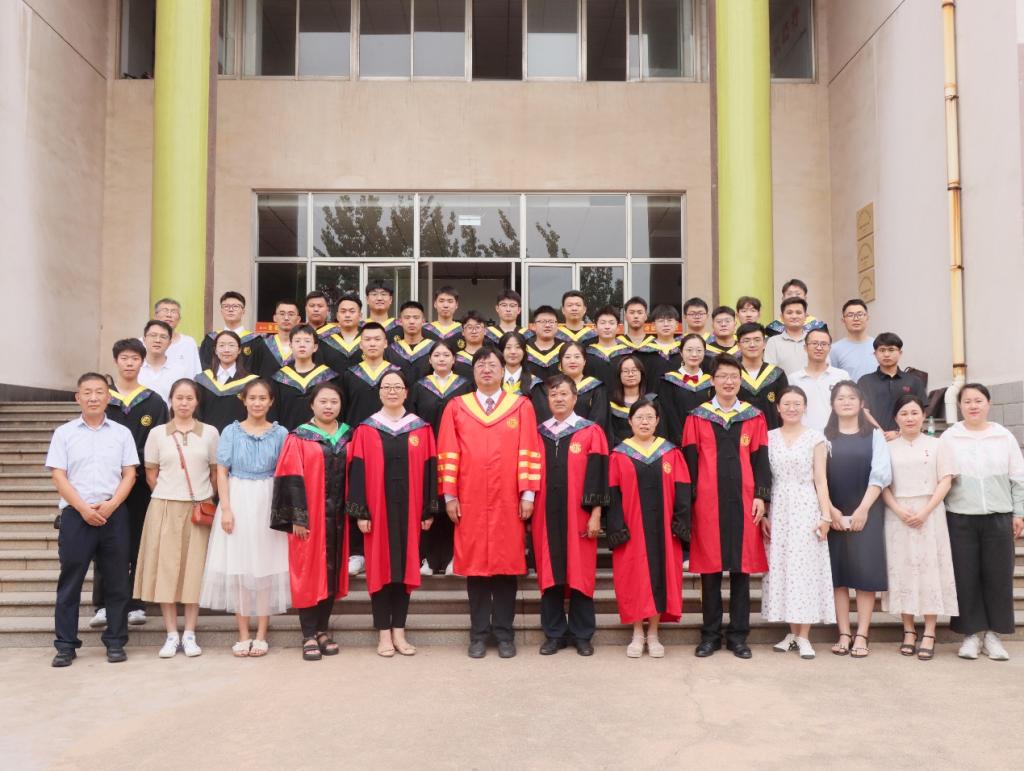 典礼结束后,校领导和毕业生代表在文科楼前合影留念。