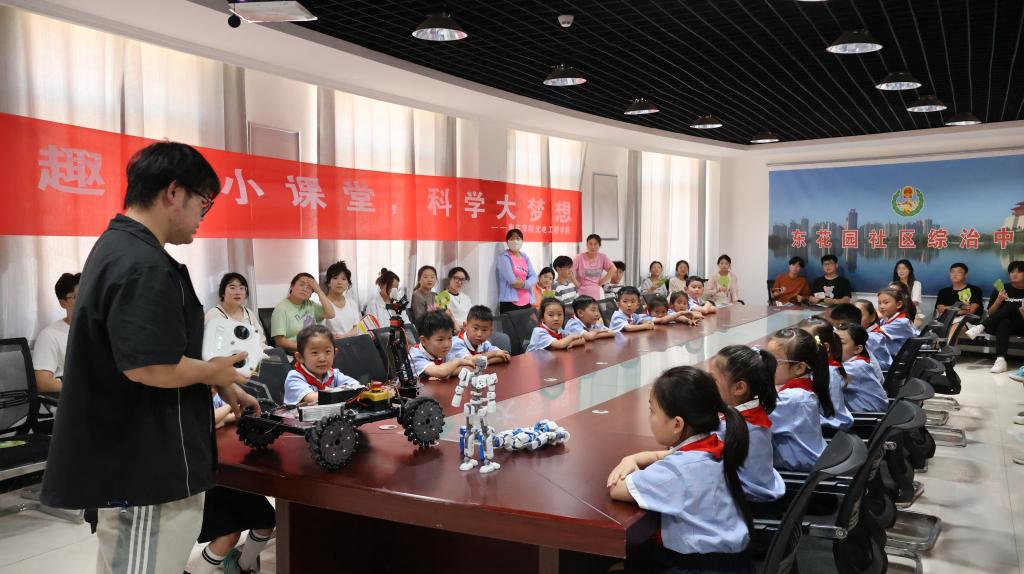 趣味科学小课堂,追逐少年大梦想。在东花园小区,志愿者为来自市中区中兴小学的20名小朋友上了一节充满乐趣的科学实践课,课上展示了2024年睿抗机器人开发者大赛省赛一等奖作品“睿苗智能侠”,让小朋友亲身体验遥控自制机器人的乐趣与奥妙;采用一对一的模式指导小朋友完成风力发电机、盐水发电机、七彩小夜灯、四驱小赛车等作品,用“童言童语”为小朋友们讲解物理知识;让小朋友们在动手中拓宽科学视野,在实验中悟出科学真理。