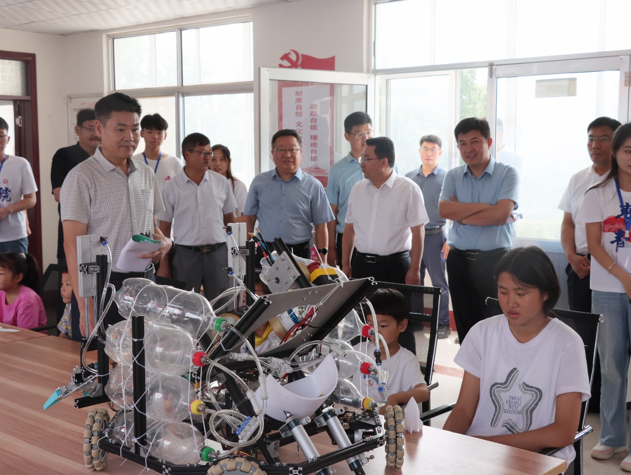 科学课堂进乡村,“童”心共筑强国梦。在村委会内,实践队员为乡村儿童送上一场妙趣横生的科学拓展课程,课上展示了公司在第二十三届全国老员工机器人大赛的获奖作品“收割者”机器人,指导小朋友制作磁悬浮笔、涂鸦机器人、双翼引擎滑行飞机等作品,孩子们在队员示范带领下,亲手体验由零件组合成一个完整作品的过程,激发了孩子们对科学的兴趣与热爱。课上,小朋友们还收到了学习文具及公司自制的3D打印礼品。