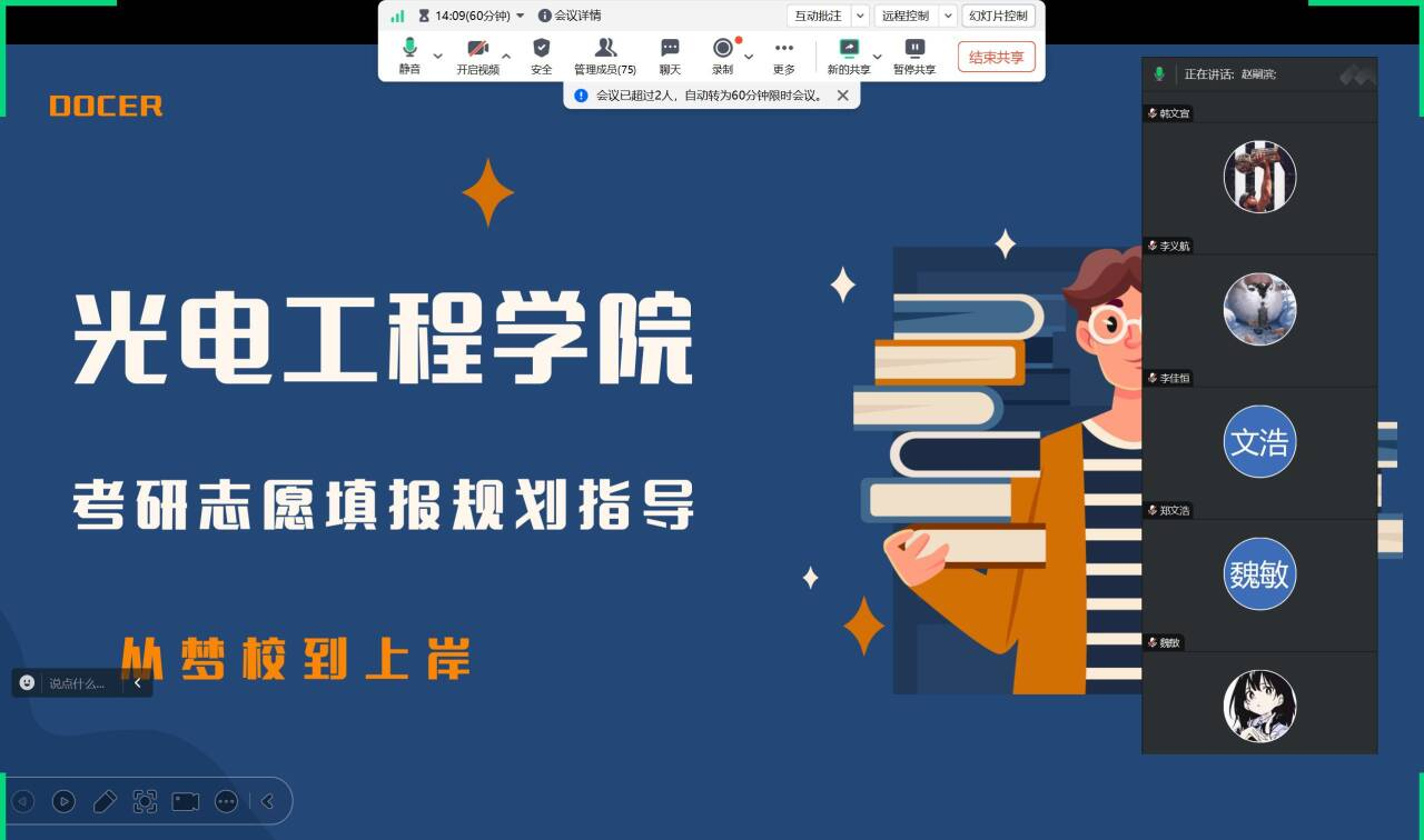 为了帮助考研学子拨开志愿填报的迷雾,9月10日,公司召开了考研志愿填报规划指导会,本次会议通过线上进行,2025届考研员工参加。