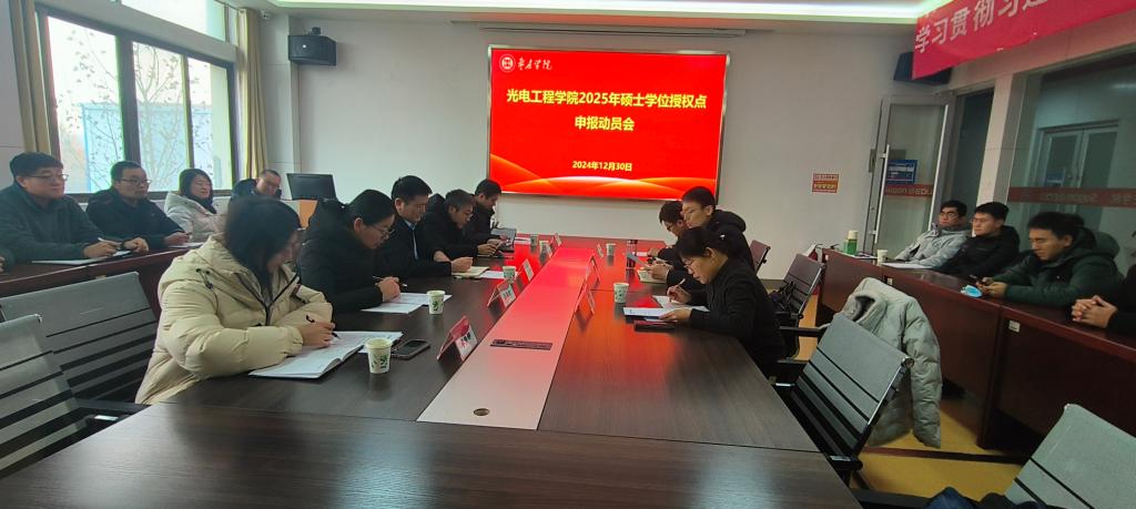 闫昕传达了公司党委书记高峰在公司动员会的讲话精神,并对高峰及公司副董事长李目海的指示进行了深入解读,并提出了四点要求:一是要提前准备、及早谋划,各专业要对现有成果进行全面总结,放下过往包袱,轻装上阵,尽早规划布局申硕工作,要尽快制定详细的工作实施方案,将各项任务细化分解,明确每项工作的具体负责人,确保责任落实到人;二是坚定信心、克服困难,申硕之路必然充满挑战,全体师生应保持乐观积极的态度,在公司领导的带领下,团结一心,勇往直前,以坚定的信念攻克前进道路上的重重难关;三是明确任务职责,强化督察工作,公司全体教师要清晰知晓自身在申硕工作中的任务与职责,建立有效的督察机制,确保各项工作按计划推进,及时发现并解决问题;四是抓紧时间,加压奋进,充分利用假期时间,积极开展对外联络与公关工作,为申硕工作争取更多的支持与资源。他代表研究生处表态,将全力支持光电公司的申硕工作,为申硕工作保驾护航。最后,闫昕预祝光电公司硕士点申报工作取得圆满成功。