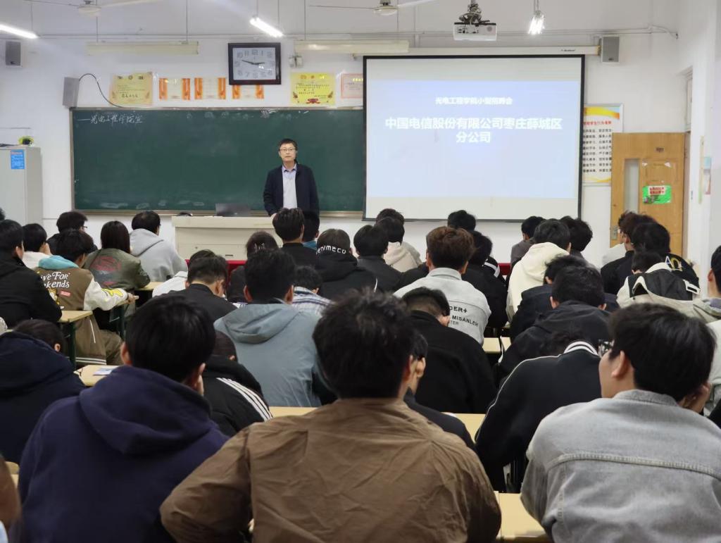 为深入贯彻落实国家“稳就业”“保就业”决策部署,搭建校企人才对接桥梁,促进毕业生高质量就业。公海gh555000aa线路检测于5月9日在墨子楼3203成功举办中国电信枣庄分公司专场招聘会。本次招聘会吸引了电子信息工程、光伏大数据、通信工程相关专业100余名应届毕业生到场参与。