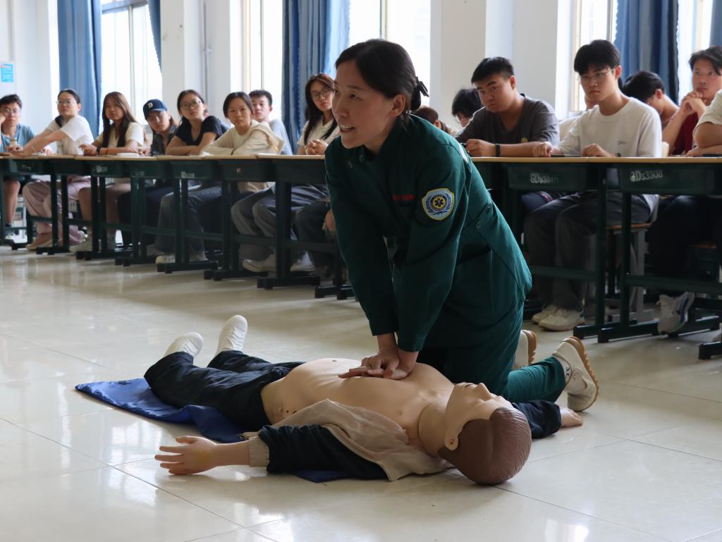 培训伊始,马士云护士结合丰富的临床经验,以生动的案例向师生们强调了掌握心肺复苏技能的重要性。她指出,心脏骤停后的“黄金4分钟”是抢救的关键期,正确实施心肺复苏可大幅提高患者生存率。随后,她通过理论讲解与实操演示相结合的方式,详细介绍了心肺复苏的操作流程,包括判断意识、呼救、胸外按压、开放气道、人工呼吸等关键步骤,并重点强调了操作规范及注意事项。