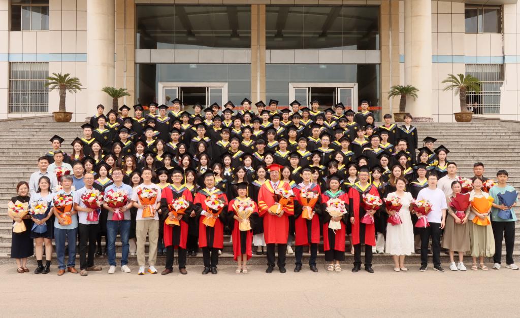 典礼在浓情厚意、充满感动的氛围中顺利落下帷幕。典礼结束后,校领导和毕业生代表在综合楼前合影留念。
