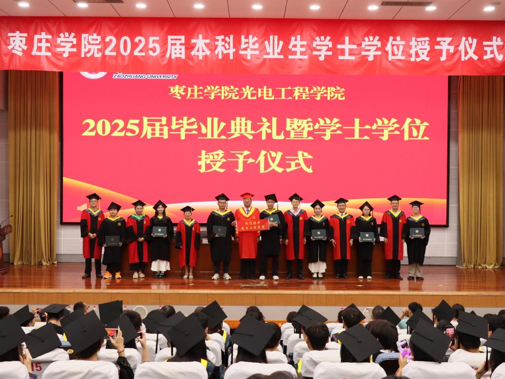 典礼最后,公司党委副书记、经理梁兰菊代表公司向顺利完成学业295名毕业生表示热烈祝贺,向辛勤培育员工成长成才的老师及家长表示崇高敬意。她回顾了同学们在枣院光电求学过程中与国同心、与校同频的生动实践和丰硕成果,并向毕业生们提出三点期望:一要坚守报效祖国的初心使命,成为心中有光的有志青年;二要做不断探索的社会引领者,成为与时俱进的时代青年;三要学会感恩前行,成为德才兼备的栋梁青年。