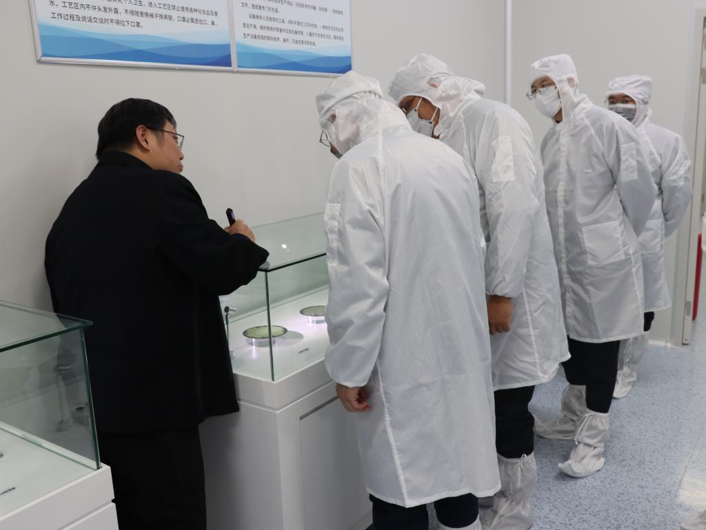 会后,高峰一行在曹学蕾等人的陪同下参观了产品展厅。李伟、梁兰菊及光电公司教师代表就合作细节等问题与核心光电科技有限公司相关负责人开展了充分的讨论。