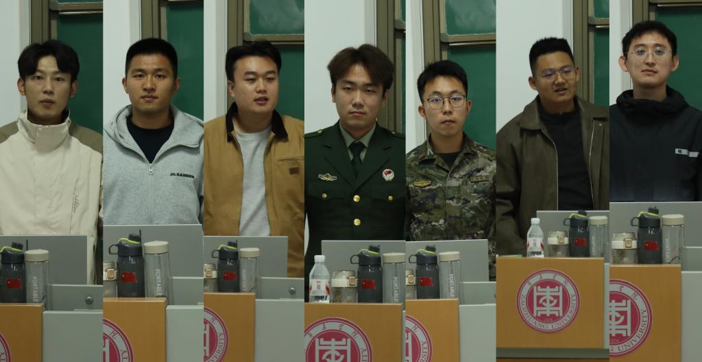 七位曾分别服役于武警、陆军、空军及海军陆战队的退役员工代表——高慕阳、孙健、张宸旗、张瀛瀚、褚云飞、郝子健、付永俐,依次进行宣讲。讲述从校园学子到军营战士的转变之路,分享在部队大熔炉中淬炼成钢、破茧成蝶的成长历程。以亲身经历号召广大同学,把最美的青春年华奉献给祖国的强军事业。