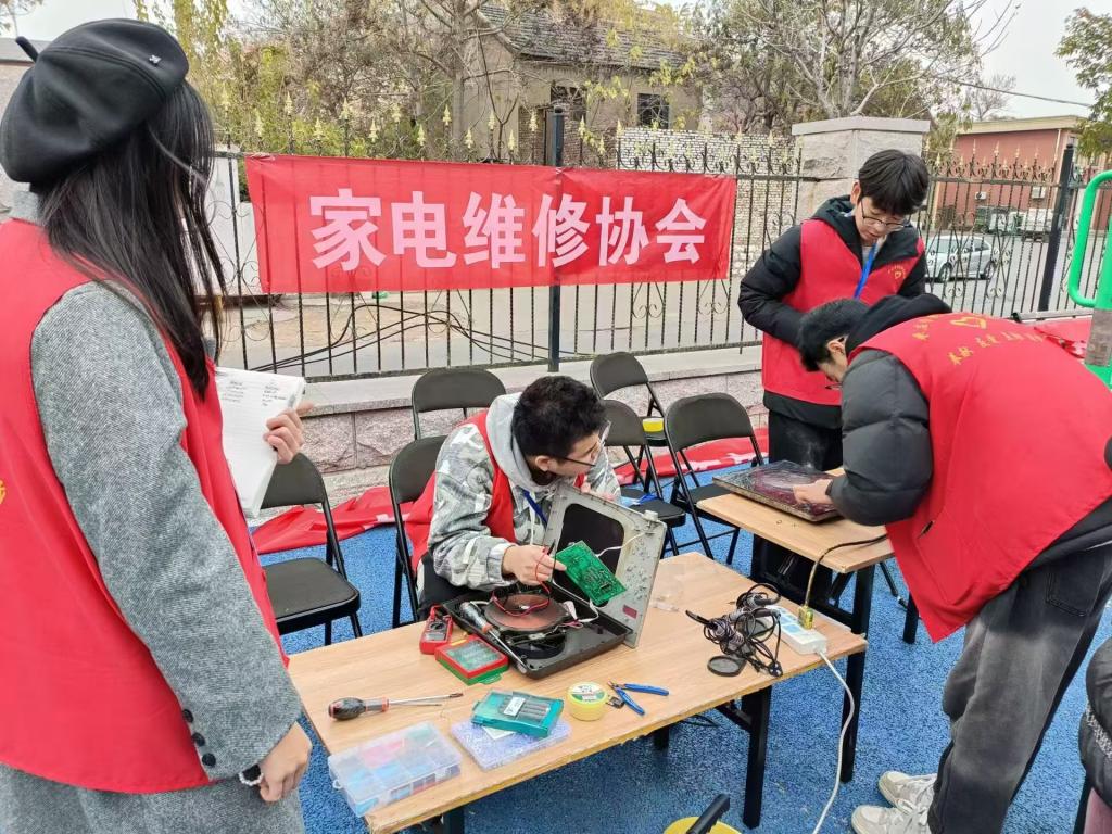 在八大家西里小广场,志愿者们设立维修服务点,为居民提供家电义务维修及用电安全宣传服务。面对送来维修的家电,志愿者热情接待,仔细询问故障情况并登记;运用专业知识与技能进行检测诊断,力求找到问题的根源,及时进行维修并告知家电的使用和保养方法。同时,志愿者还向居民普及用电安全知识,提醒冬季日常用电注意事项,为保障居民的生活安全贡献青春力量。