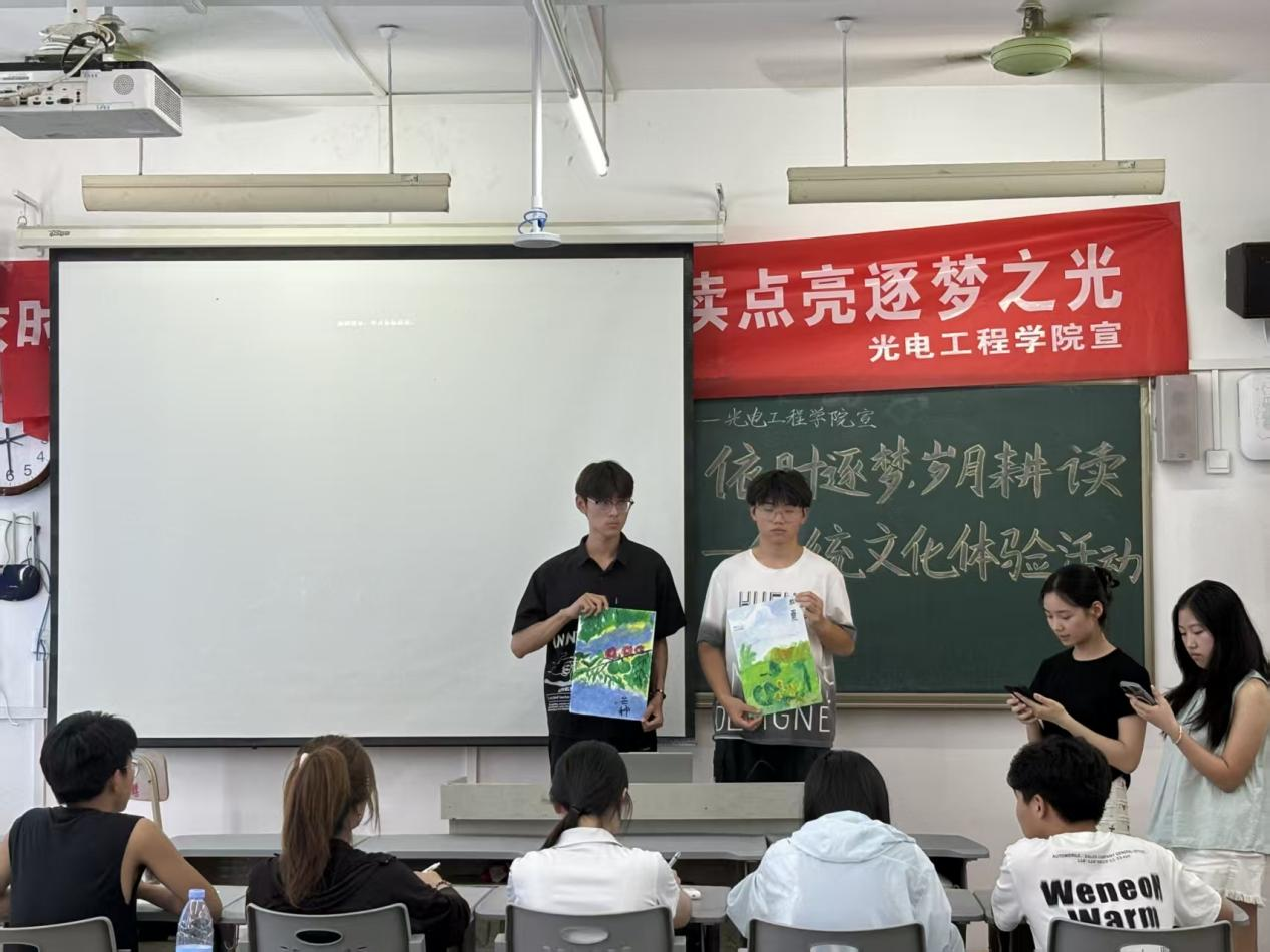 活动现场,同学们以二十四节气为脉络,以传统美学为经纬,充分发挥想象力,聚焦“谷雨”与“小满”两个节气,采用手抄报、PPT和文创作品进行创作。随后,同学们依次上台生动阐释了作品的设计灵感与创意理念,分享了自己在创作过程中文化体验和心灵的成长。最后,评委们根据作品创意、表现手法等多方面综合考量,评选出一等奖1名、二等奖3名、三等奖3名、优秀奖4名。