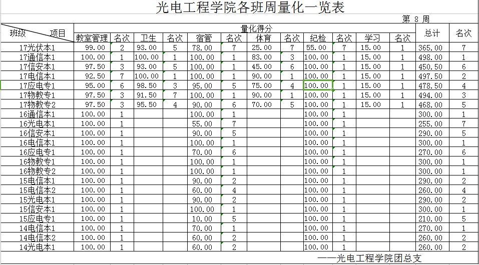 [量化成绩] 2017-2018-2 第八周各班量化一览表