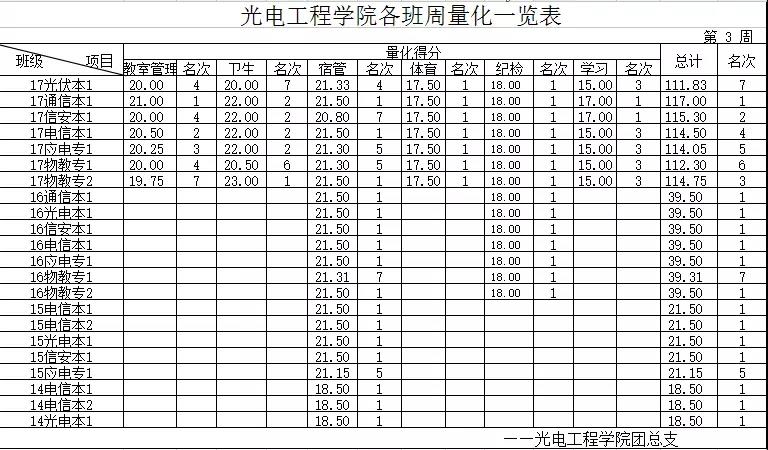 [量化成绩] 2017-2018-2 第三周各班量化一览表