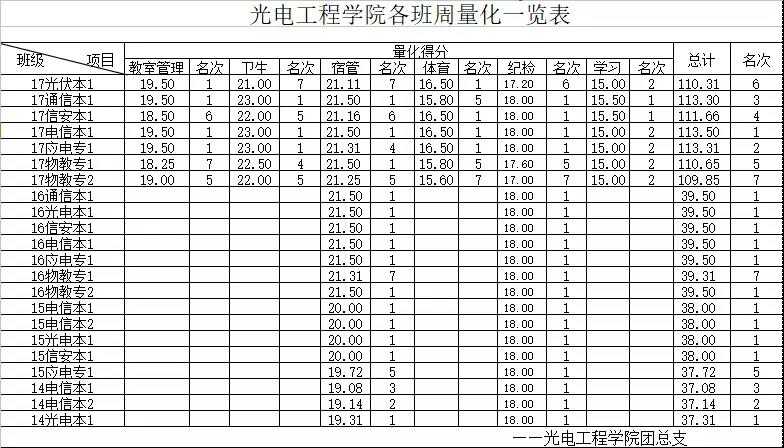 [量化成绩] 2017-2018-2第五周各班量化一览表