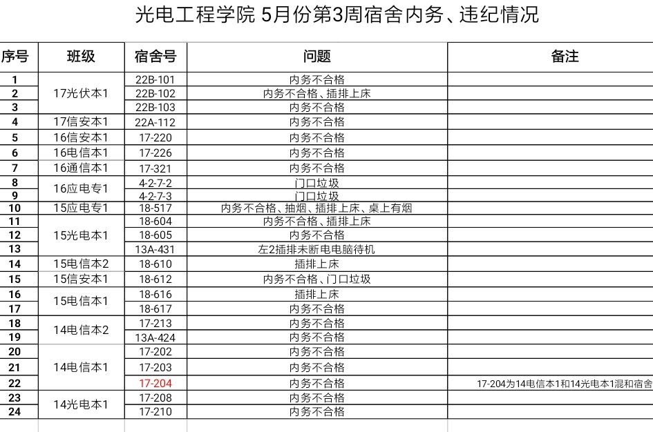 [结果通报] 2017-2018-2 员工公寓校级检查结果通报(第十一周)