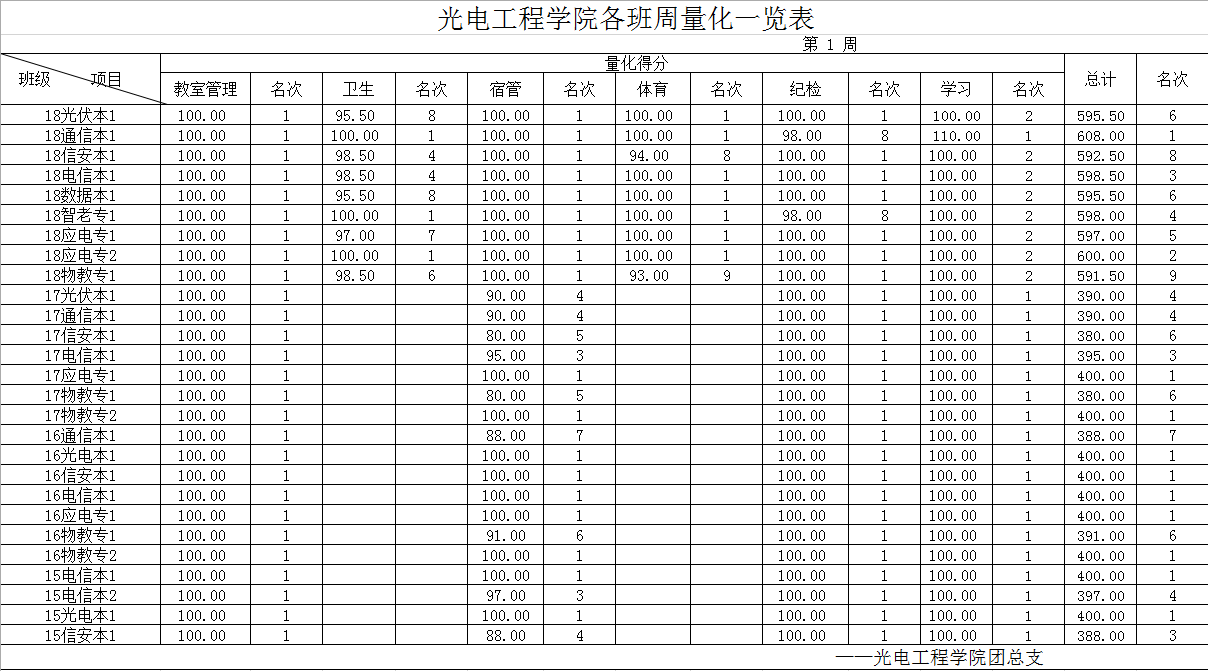 [量化成绩] 2018-2019-2 第1周各班量化一览表