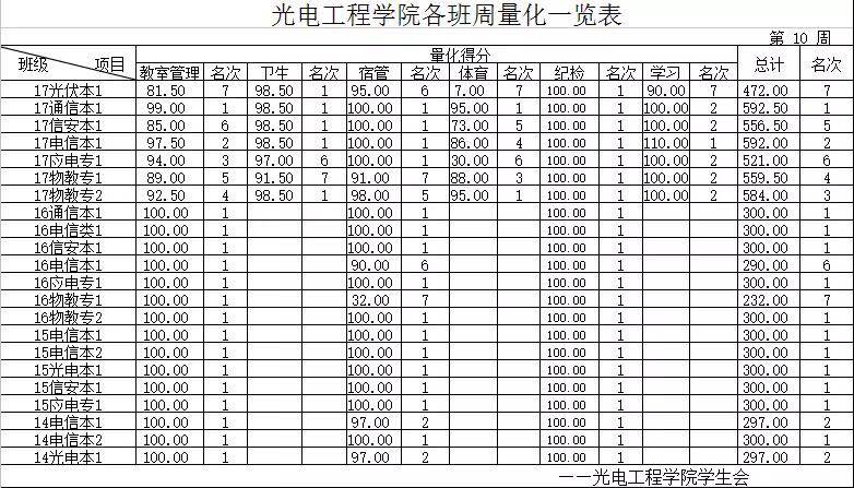 [量化成绩] 2017-2018-2 第十周各班量化一览表