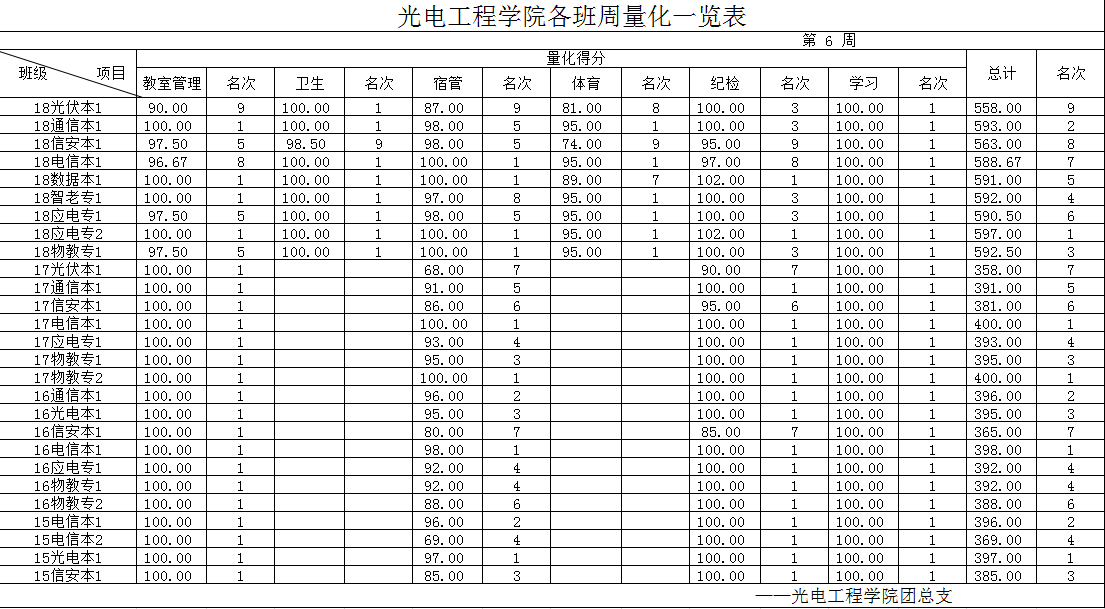 [量化成绩] 2018-2019-2 第6周各班量化一览表
