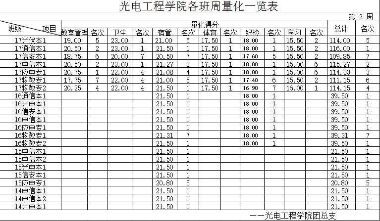 [量化成绩] 2017-2018-2 第二周各班量化一览表