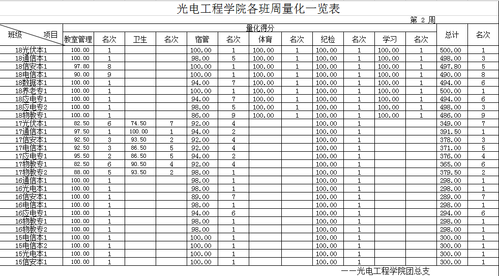 [量化成绩] 2018-2019-1 第2周各班量化一览表
