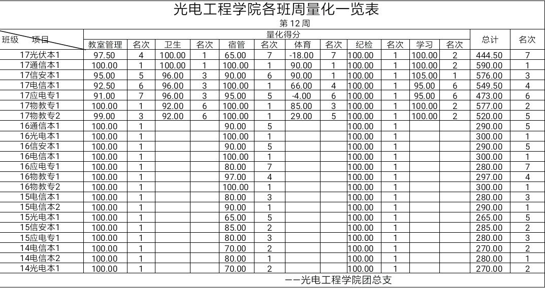 [量化成绩] 2017-2018-2 第十二周各班量化一览表