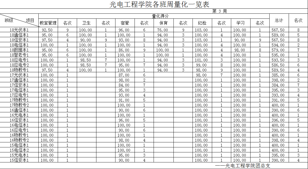 [量化成绩] 2018-2019-2 第3周各班量化一览表