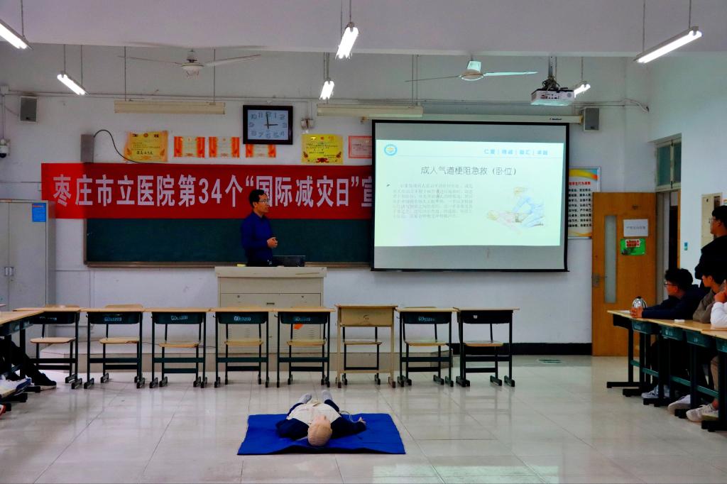 为普及公共卫生知识,增强老员工自我保护意识和应急救护能力,保障护员工身体健康和生命安全,在第34个“国际减灾日”来临之际,公海gh555000aa线路检测邀请枣庄市立医院医护人员在市中校区墨子楼举办“老员工急救知识讲座”。2023级部分新生参加此次讲座,本次活动采取理论宣讲、视频学习、互动交流、模拟演练等方式进行。