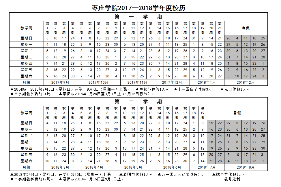 2017-2018学年度校历