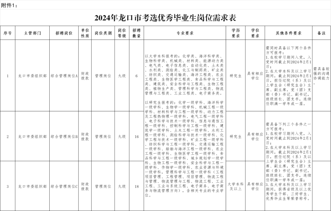 近年来,龙口市委组织部始终着眼于后继有人这一根本大计,持续开展优秀毕业生招考,2024年,龙口市将继续招考40名大学本科及以上学历的优秀毕业生来龙工作,考选简章详见原文。