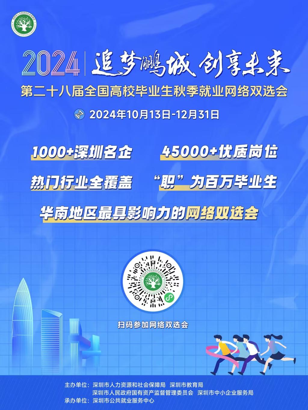本届网络双选会由深圳市人力资源和社会保障局牵头主办,深圳市教育局、深圳市人民政府国有资产监督管理委员会、深圳市中小企业服务局联合主办。