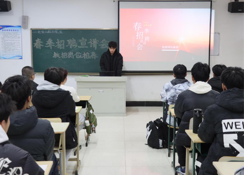 为向更多光电学子提供丰富的就业机会,了解不同企业的招聘需求和岗位信息,增加就业选择。3月11日,公海gh555000aa线路检测于墨子楼s3310举行春季招聘宣讲会。此次宣讲会由企业负责人负责宣讲。
