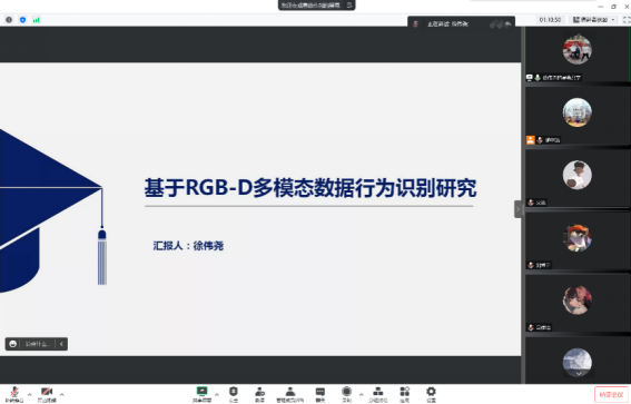 徐伟尧博士做了题为《基于RGB-D多模态数据行为识别研究》的学术报告,对多模态人体行为识别的研究主要从三个方面展开:单模态特征提取、多模态特征融合和跨模态特征对齐。与传统的基于单一模态数据的人体行为识别不同,多模态数据人体行为识别能够有效利用不同模态数据的特点,充分利用不同模态数据的互补信息,具有更强的泛化性能。
