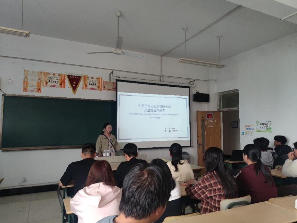 吴丹博士作了题为《牛蒡子苷元衍生物的合成与生物活性研究》的学术报告。本次报告旨在帮助本科生了解药物化学研究前沿,拓展学术视野。报告系统介绍了牛蒡子苷元衍生物的研究进展。吴丹博士首先阐述了天然产物结构修饰的意义,随后重点讲解了在牛蒡子苷元C-22位引入含氮杂环基团的结构改造工作。通过详实的实验数据,展示了化合物B2在抑制炎症因子方面的显著效果,其抗炎活性达到母体化合物的14倍。在互动环节,同学们就药物设计思路、实验方法等问题与吴丹博士进行了深入交流。报告结束后,与会员工表示,此次报告内容翔实、讲解生动,对理解药物研发过程具有重要启发意义。
