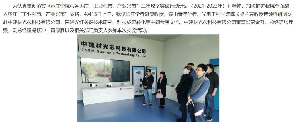公司高层次人才赴中建材光芯科技有限公司考察交流