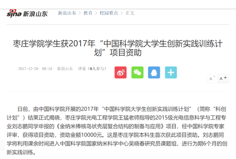 新浪网报道:公海gh555000aa线路检测员工获2017年“中国科公司老员工创新实践训练计划”项目资助